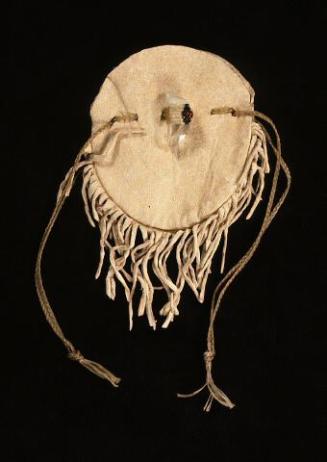 DescriptionHand made; different types of fabric scraps used to make female doll body, with unknown stuffing used; doll has flesh colored underwear and blouse; doll's clothing consists of gold and red machine stitched skirt; black fabric hair with tan thread tied around head as hair ribbon; black stitched eyes and brows, and tan mouth; black glass bead earrings stitched to sides of head; glass beads originally glued to front of skirt, but only two clear beads remain on skirt; fabric shoes; very thin, narrow black plant fiber strip wrapped around neck of doll and tied to front near waist.This record has been reviewed by University Galleries staff but may be incomplete or contain errors. Our records are frequently revised and enhanced. For any inquiries about the information listed, please email galleries@sandiego.edu.