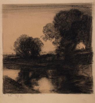 DescriptionAn impressive, detailed landscape dominated by the lacy foliage of two large oak trees. Beneath the trees, a man shepherds four cows to the bank of a quiet river. To the left in the background, a man rides a donkey past the little mill, whose wheel can be seen just behind the wooden bridge. This record has been reviewed by University Galleries staff but may be incomplete or contain errors. Our records are frequently revised and enhanced. For any inquiries about the information listed, please email galleries@sandiego.edu.