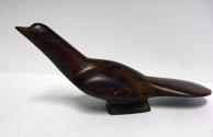 DescriptionHand carved stylized figure of bird, wide body, elongated up stretched neck and head, with small pointed beak, very wide tail, rounded at end; body atop pedestal, all of one piece; dark brown ironwood, with black striations.This record has been reviewed by University Galleries staff but may be incomplete or contain errors. Our records are frequently revised and enhanced. For any inquiries about the information listed, please email galleries@sandiego.edu.