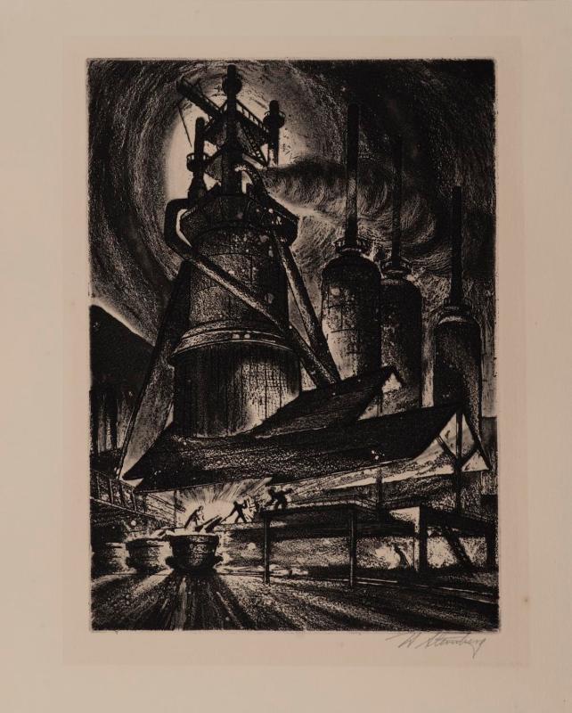 DescriptionNight scene with small figures working in the foreground in front of a blast furnace. This record has been reviewed by University Galleries staff but may be incomplete or contain errors. Our records are frequently revised and enhanced. For any inquiries about the information listed, please email galleries@sandiego.edu.